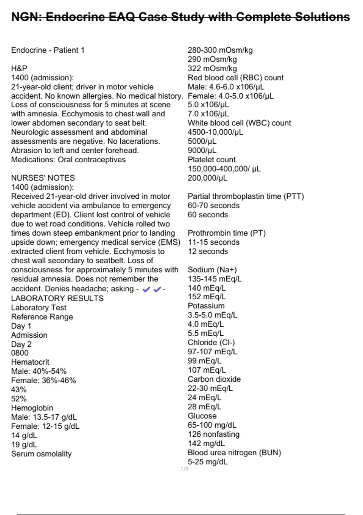 , NGN: Endocrine EAQ Case Study with Complete Solutions