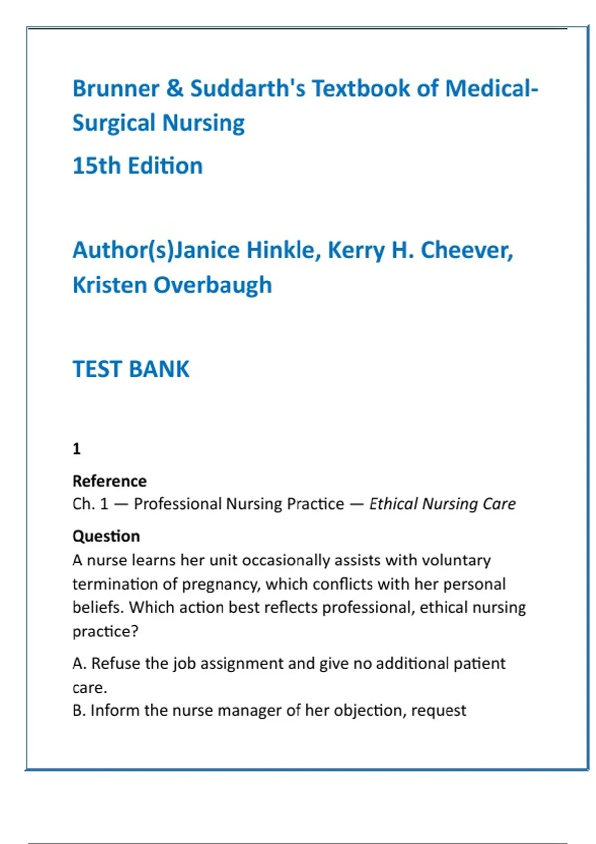 Suddarth’s Textbook of Medical-Surgical Nursing (15th Ed.). Ch.