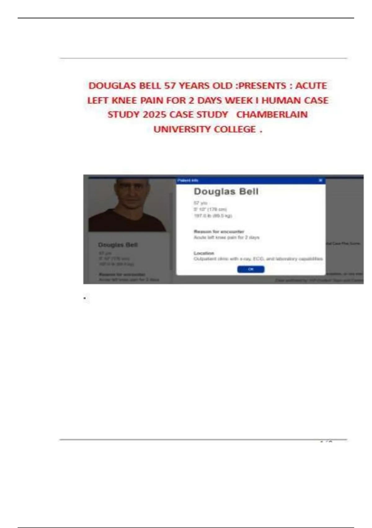 Douglas Bell Case Study 2025: 57-Year-Old Male with Acute Left Knee Pain - SOAP Note & Diagnosis