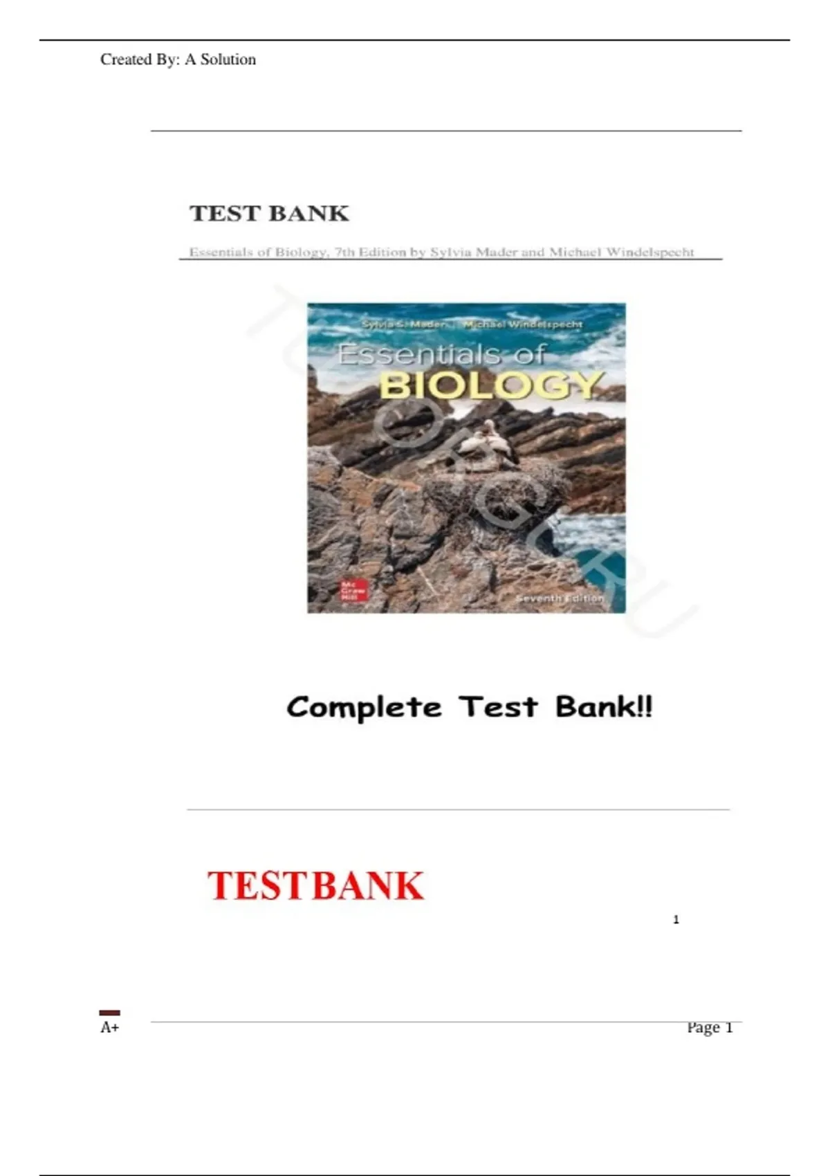 Test Bank for Essentials of Biology, 7th Edition by Sylvia Mader and