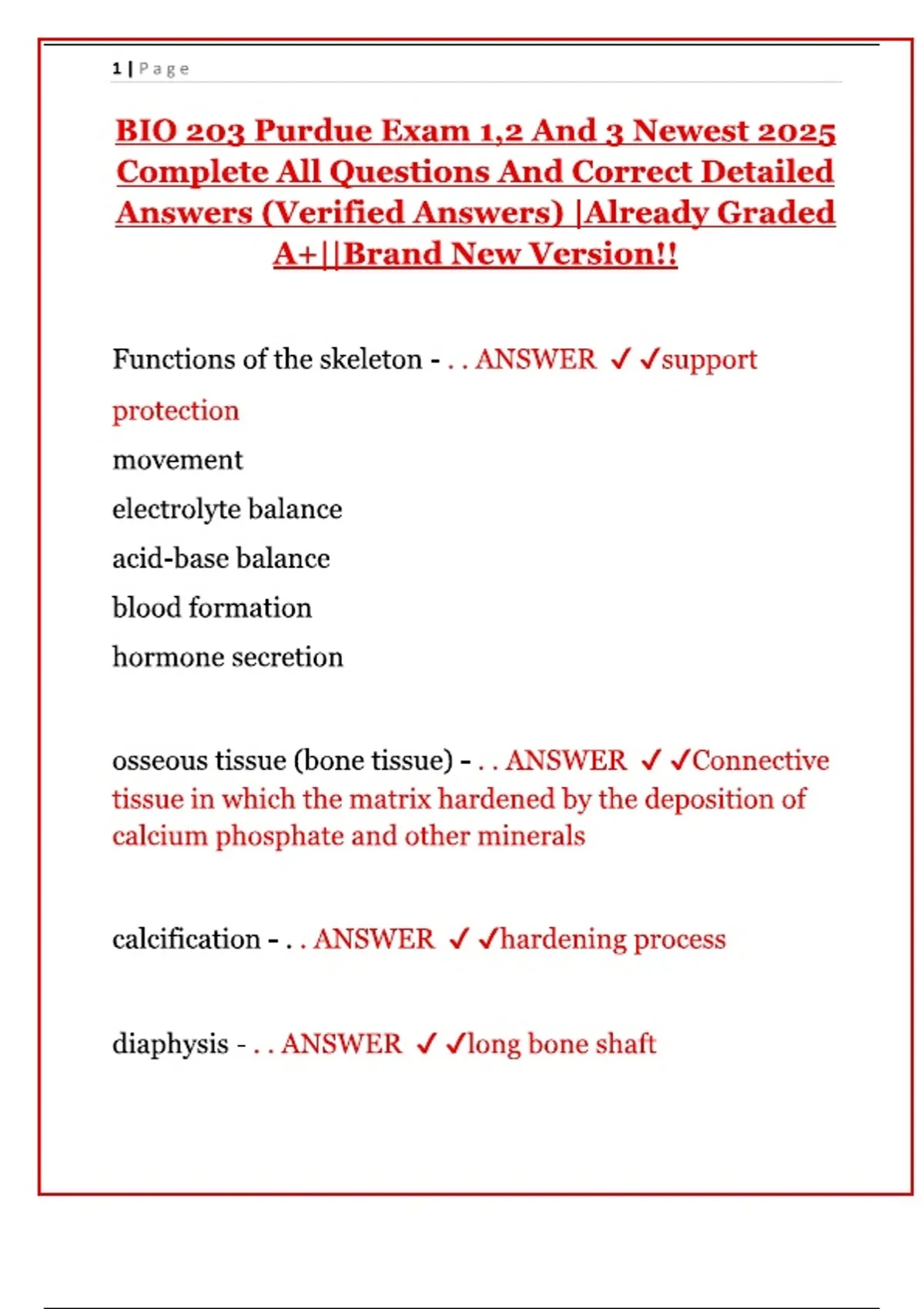 BIO 203 Purdue Exam 1 Study Guide & Practice Questions | Cell Biology