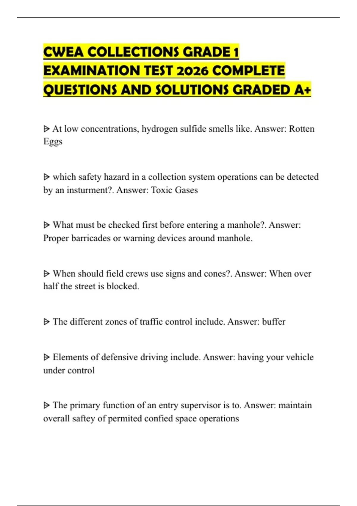 CWEA COLLECTIONS GRADE 1 EXAMINATION TEST 2026 COMPLETE QUESTIONS AND SOLUTIONS GRADED A+