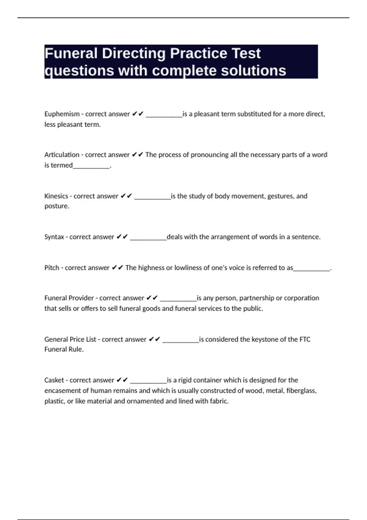 Casket - correct answer ✔✔ __________is a rigid container which is designed for the