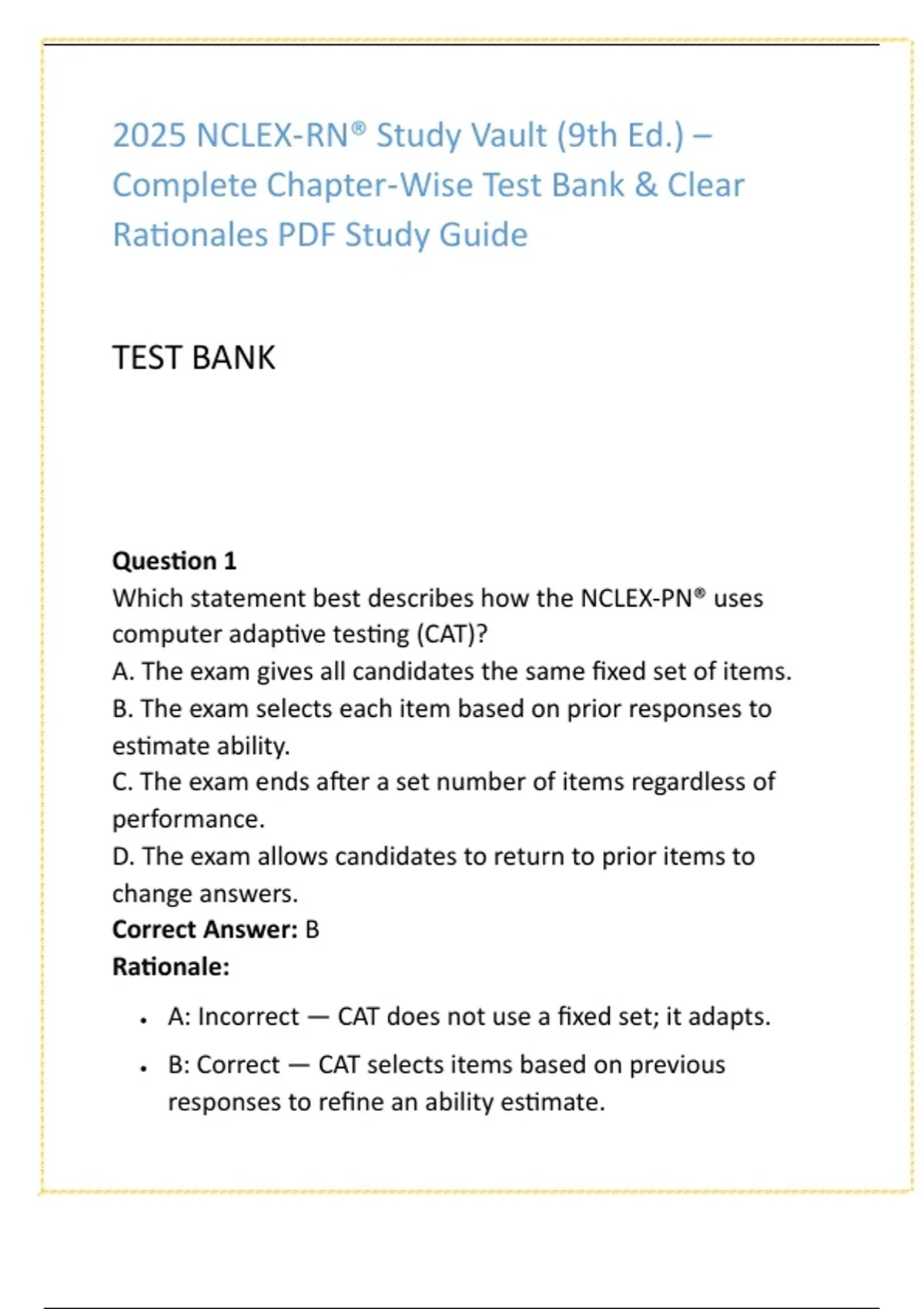 • A: Incorrect — CAT does not use a fixed set; it adapts.