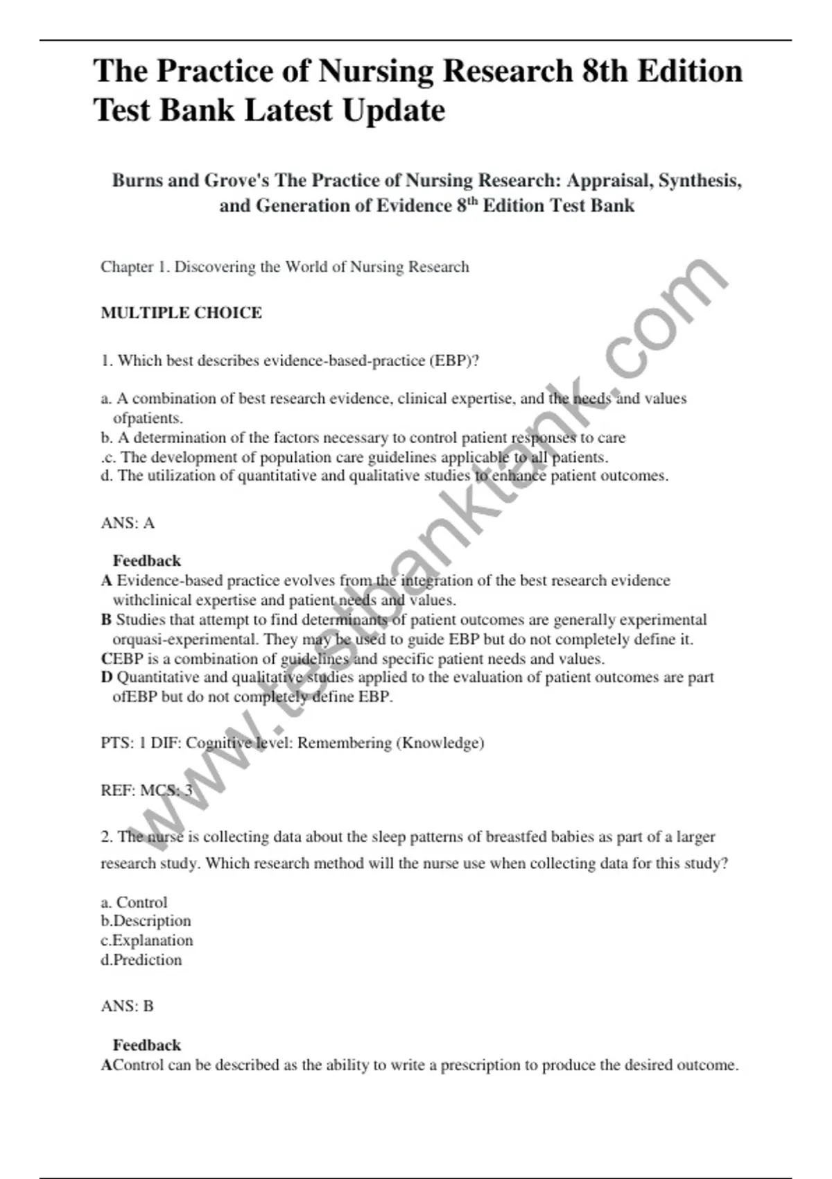 Burns and Grove's The Practice of Nursing Research: Appraisal, Synthesis, and Generation of Evidence 8th Edition Test Bank