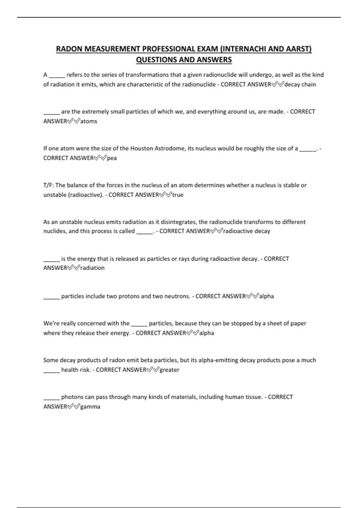 T/F: Radon gas is approximately seven times heavier than air. - CORRECT ANSWER✅✅true