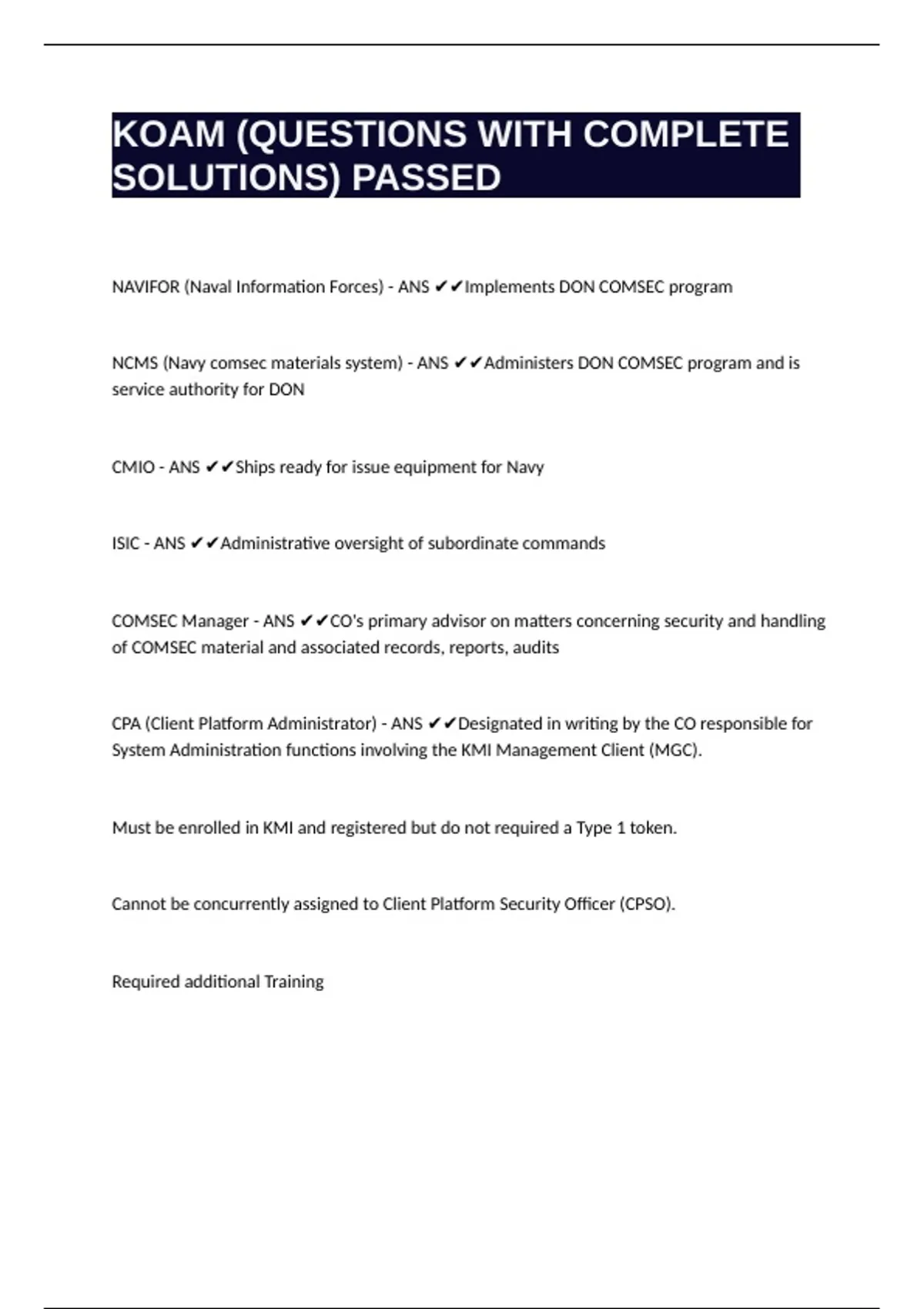 CMCS (COMSEC material control system) - ANS ✔✔System used to distribute, control, and