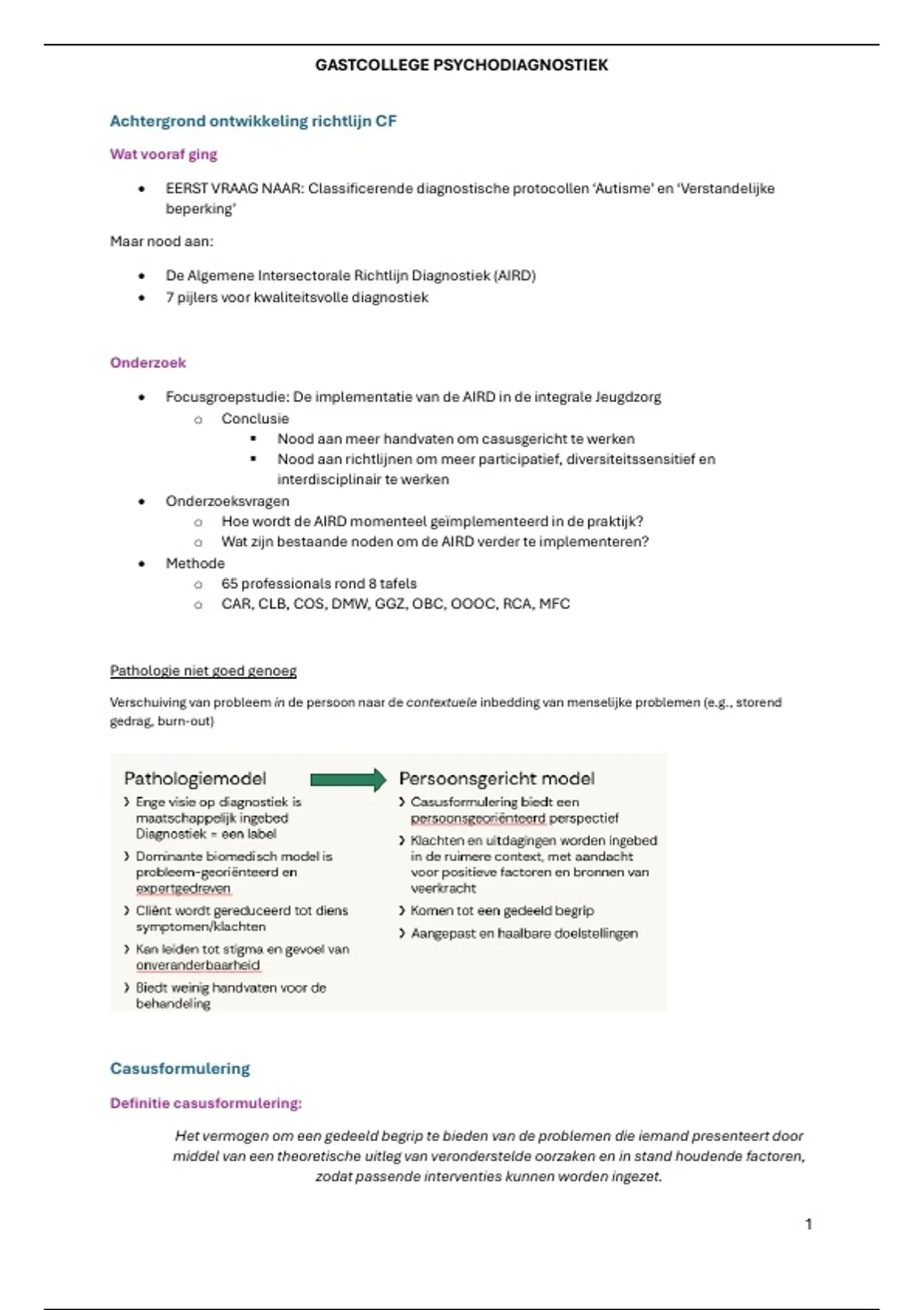 • Proces: Een casusformulering is dynamisch en kan steeds herzien en geherformuleerd worden op