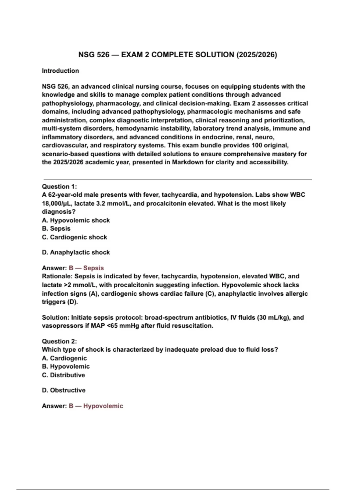 pathophysiology, pharmacology, and clinical decision-making. Exam 2 assesses critical