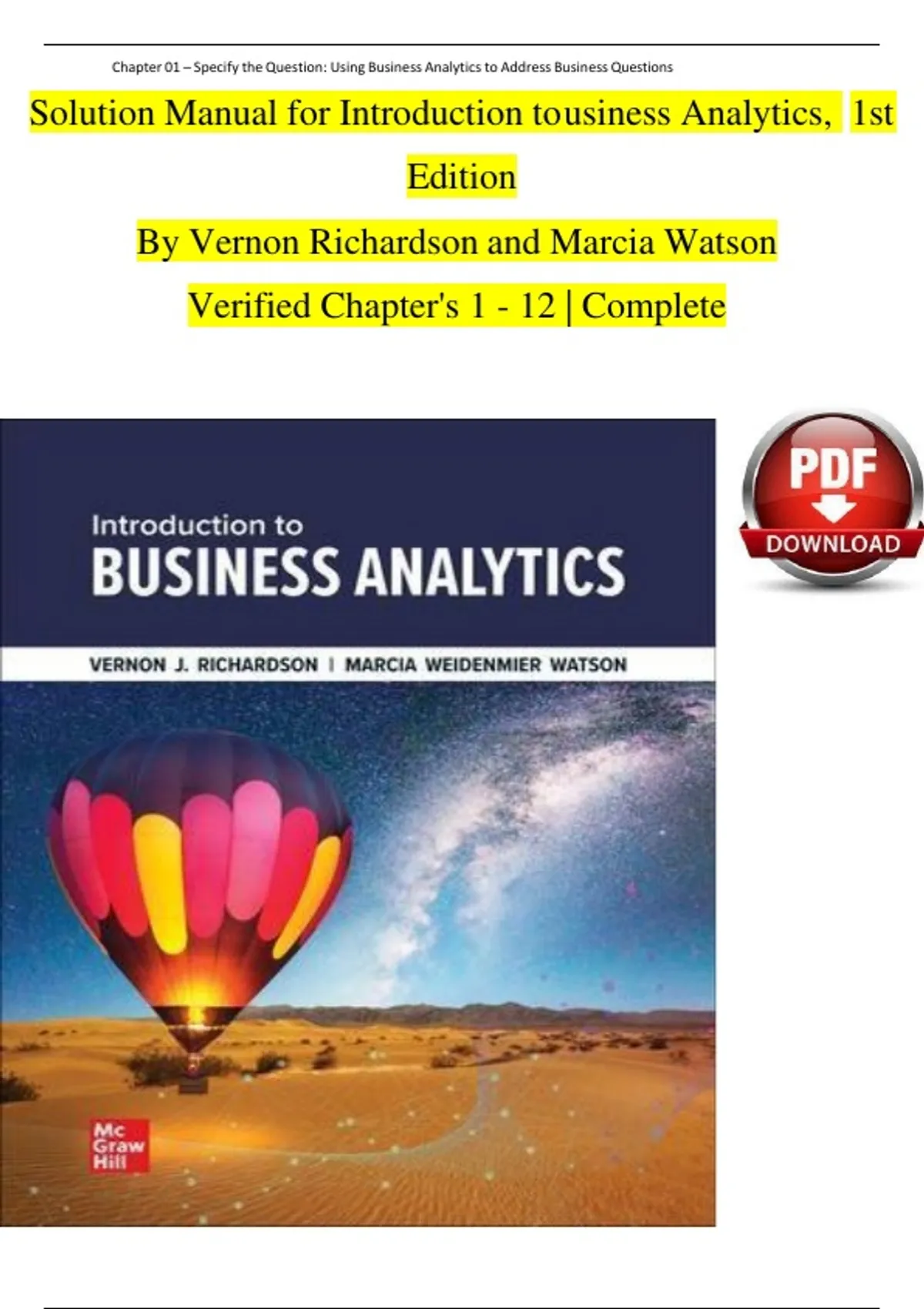 Solution Manual for Introduction to usiness Analytics, 1st