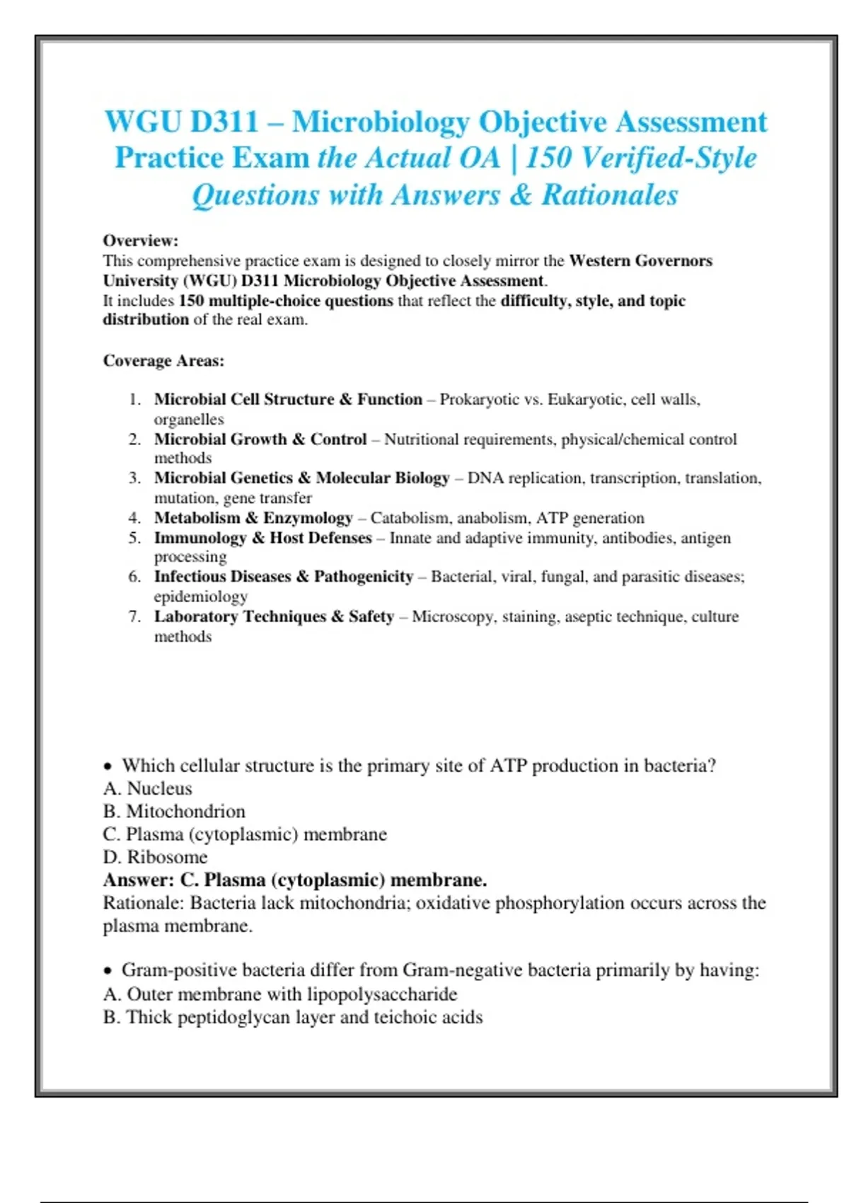 pdf***WGU D311 – Microbiology Objective Assessment Practice Exam the Actual OA | 150 Verified-Style Questions with Answers & Rationales