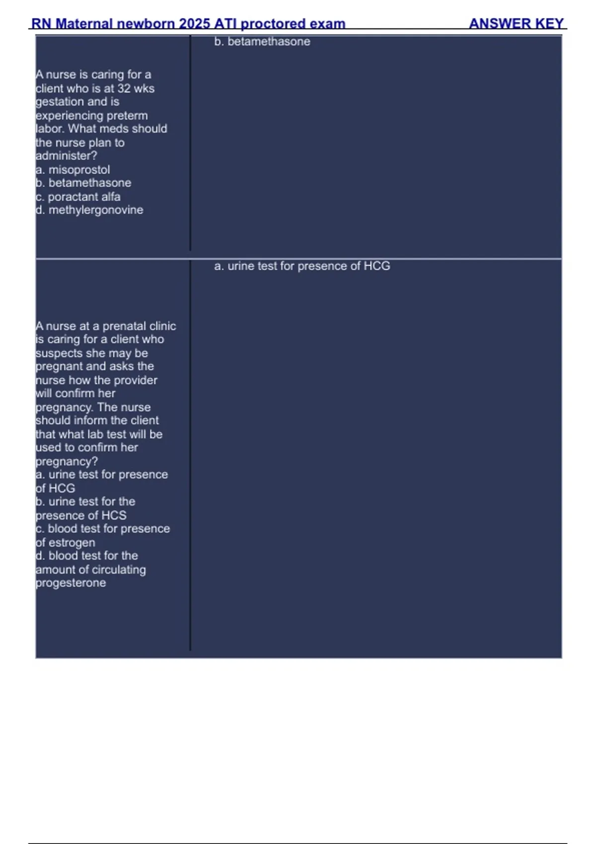, RN Maternal newborn 2025 ATI proctored exam ANSWER KEY