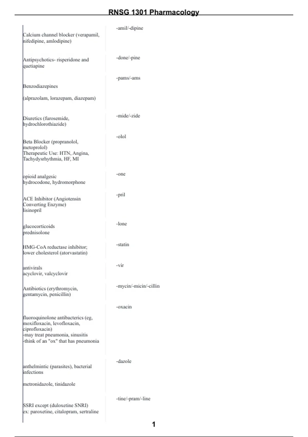 , RNSG 1301 Pharmacology