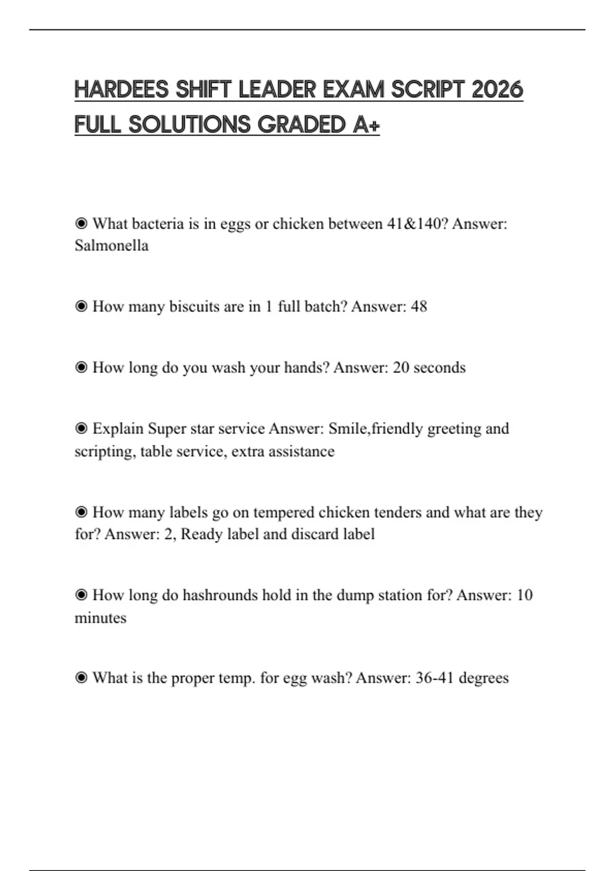 ◉ What is the proper temp. for egg wash? Answer: 36-41 degrees