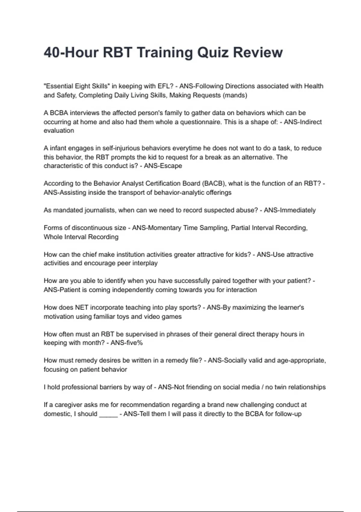 40-Hour RBT Training Quiz Review NEWEST 2026/2027 ACTUAL EXAM COMPLETE QUESTIONS AND CORRECT DETAILED ANSWERS (VERIFIED ANSWERS) |ALREADY GRADED A+||BRAND NEW!!