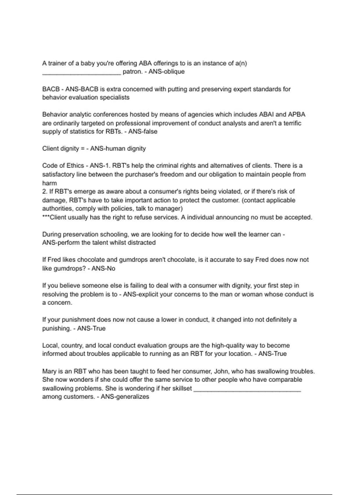 Code of Ethics - ANS-1. RBT's help the criminal rights and alternatives of clients. There is a
