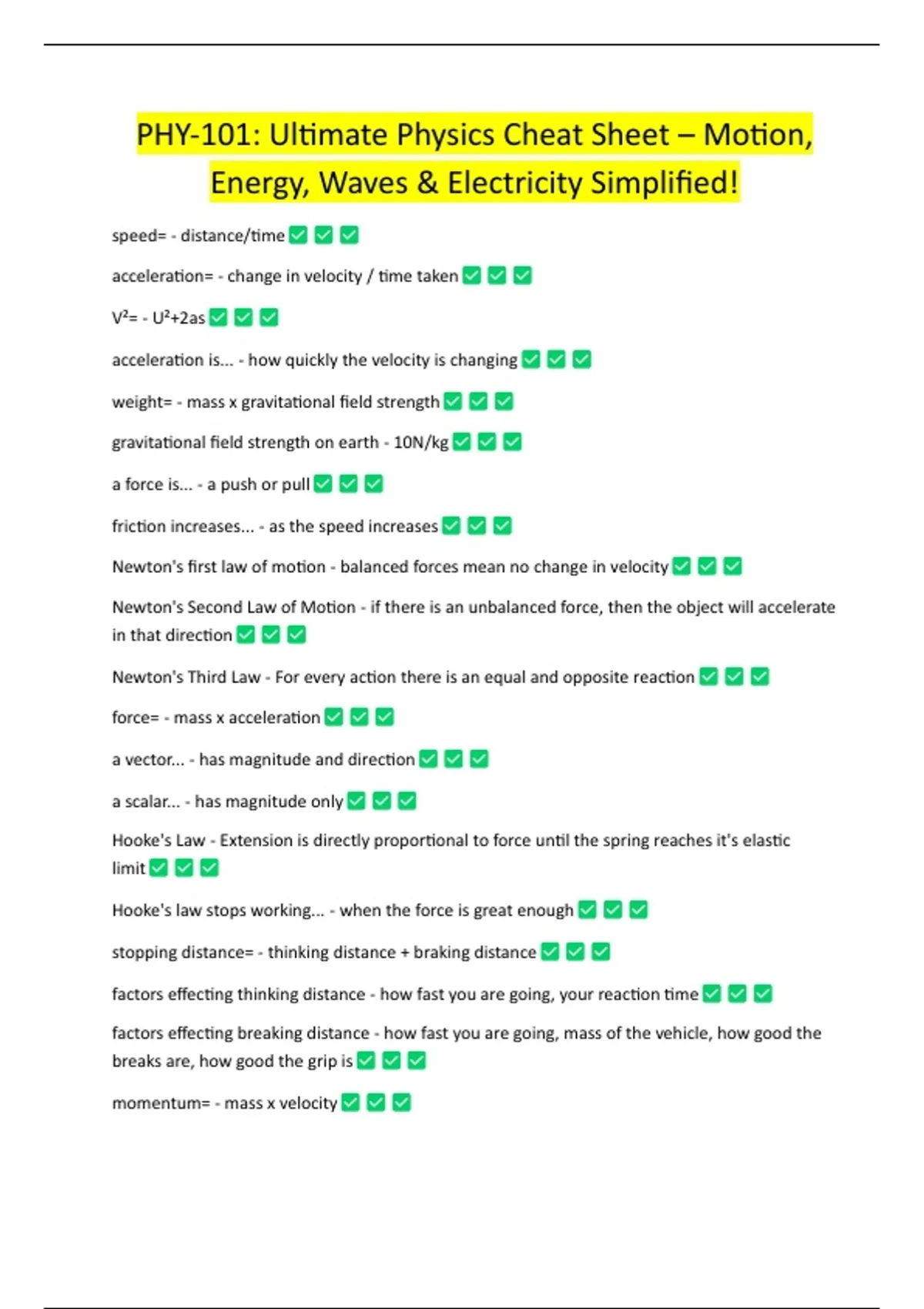 PHY-101: Ultimate Physics Cheat Sheet – Motion,