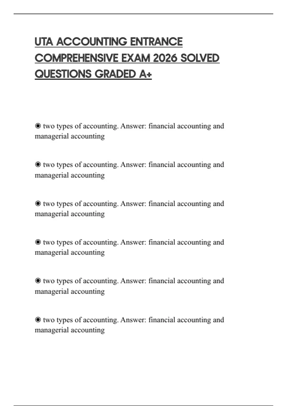 UTA ACCOUNTING ENTRANCE COMPREHENSIVE EXAM 2026 SOLVED QUESTIONS GRADED A+