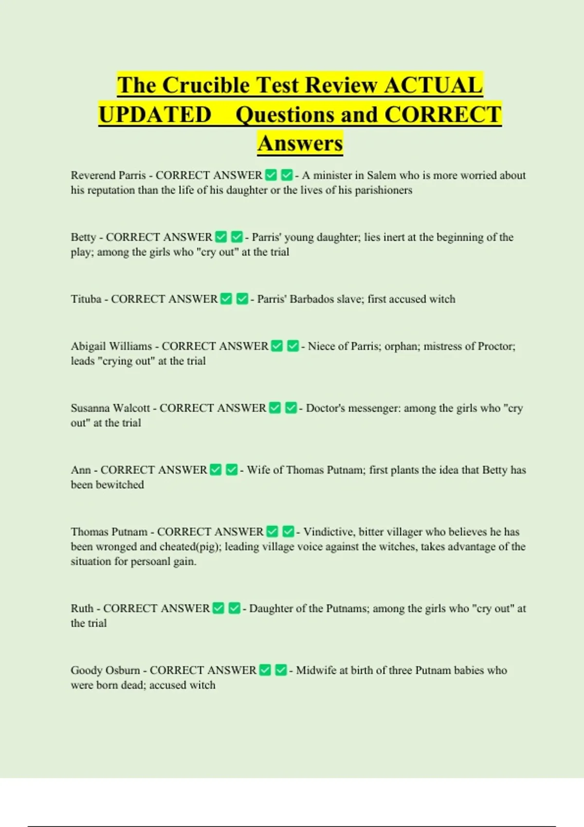 Thomas Putnam - CORRECT ANSWER - Vindictive, bitter villager who believes he has