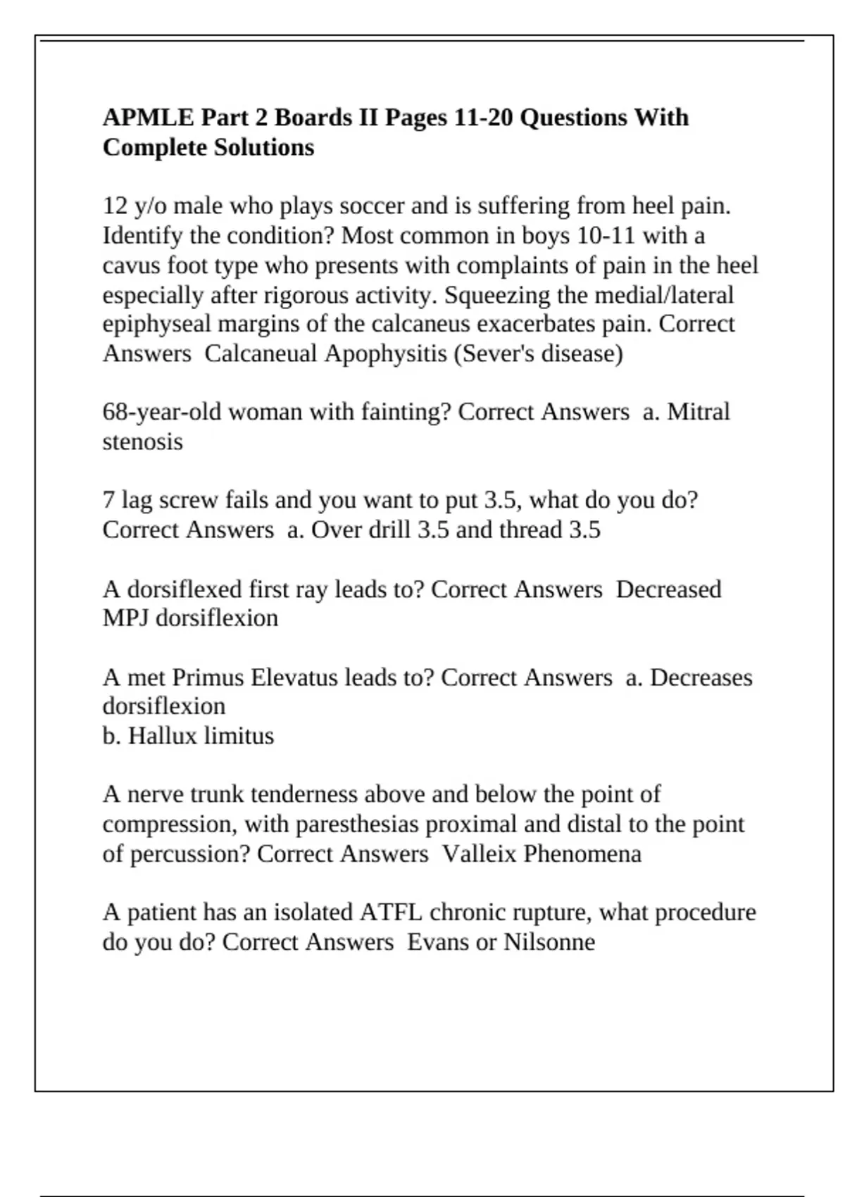 Borders of the tarsal tunel? Correct Answers 1. Flexor