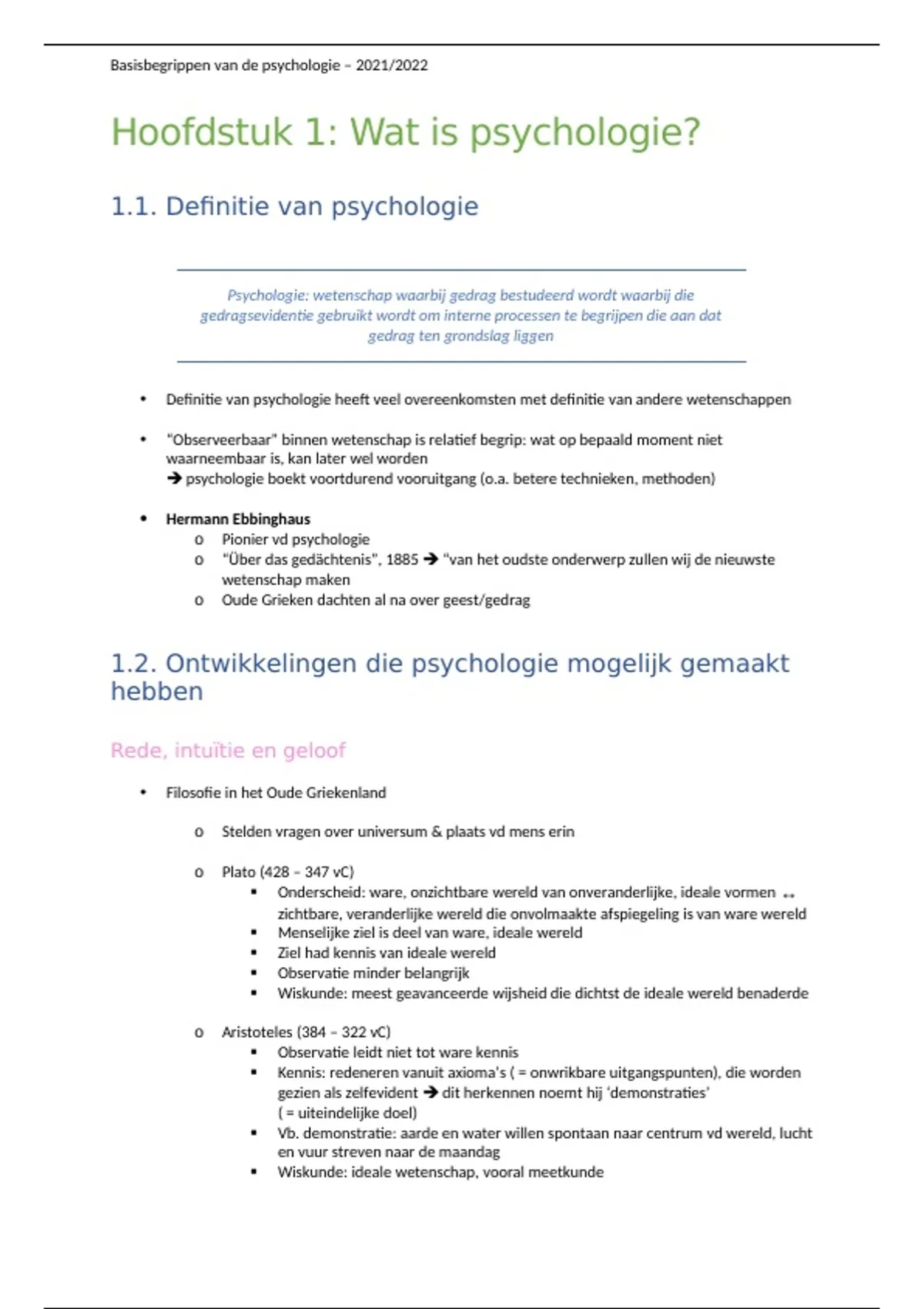 Psychologie: wetenschap waarbij gedrag bestudeerd wordt waarbij die