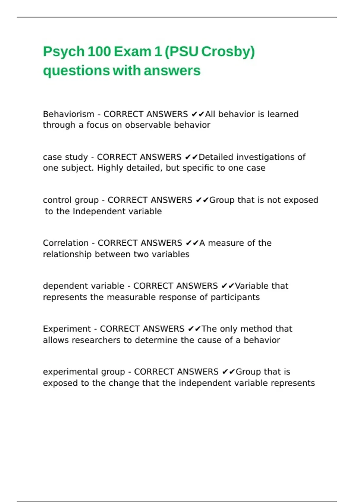Behaviorism - CORRECT ANSWERS ✔✔All behavior is learned |\ |\ |\ |\ |\ |\ |\ |\