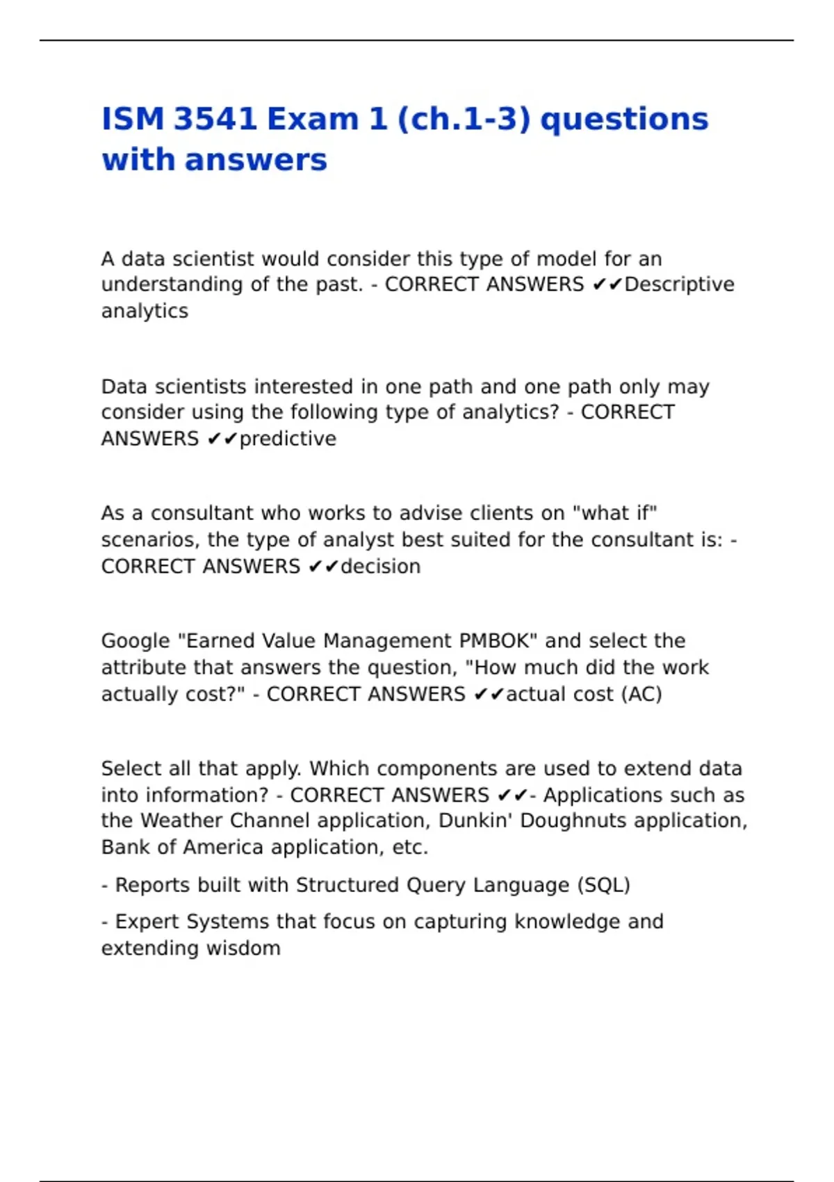 ISM 3541 Exam 1 (ch.1-3) questions with answers