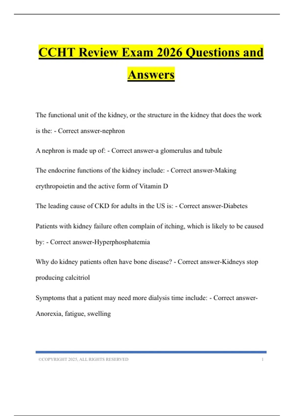 CCHT Review Exam 2026 Questions and