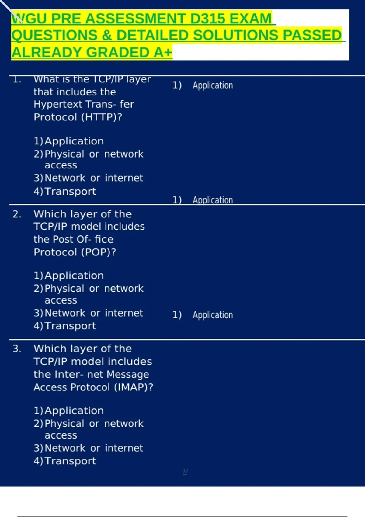 WGU PRE ASSESSMENT D315 EXAM QUESTIONS & DETAILED SOLUTIONS PASSED ALREADY GRADED A+