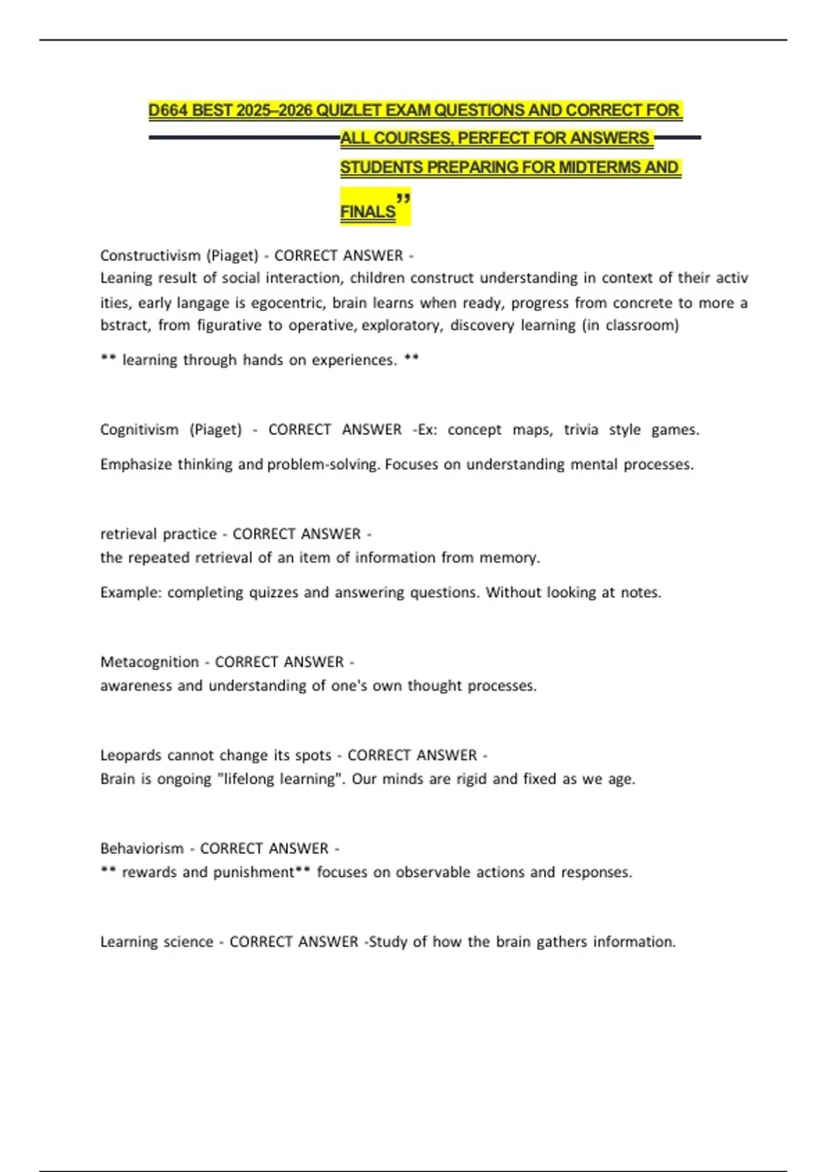 retrieval practice - CORRECT ANSWER -