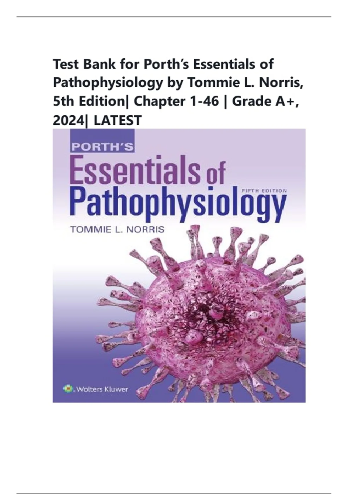Test Bank for Porth’s Essentials of Pathophysiology by Tommie L. Norris, 5th Edition| Chapter 1-46 | Grade A+, 2024| LATEST