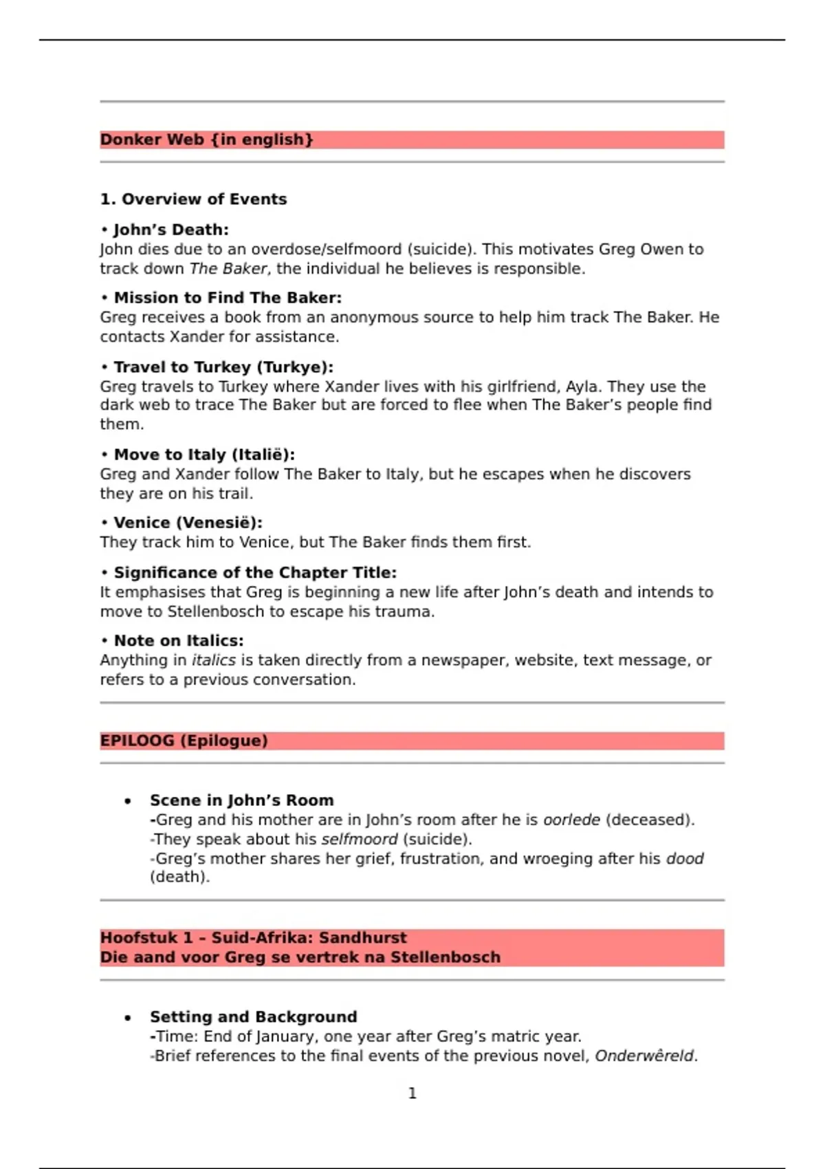 -Brief references to the final events of the previous novel, Onderwêreld.