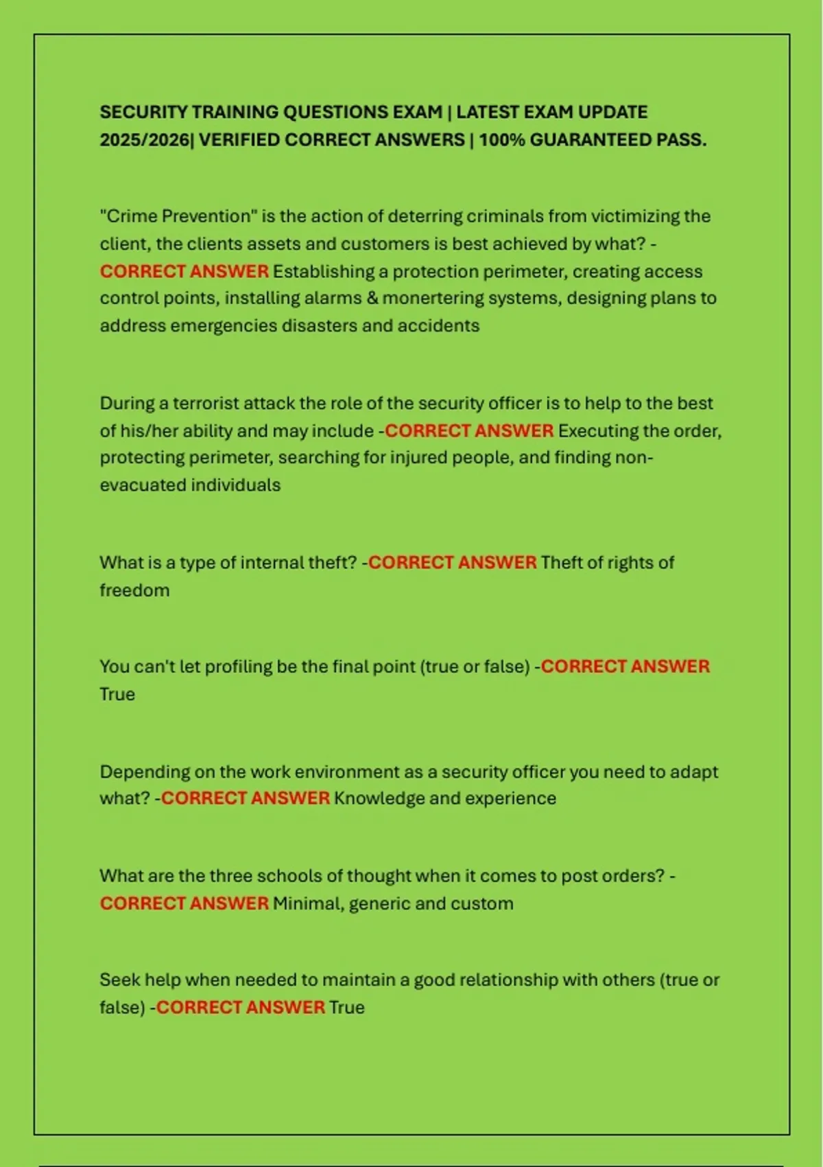 SECURITY TRAINING QUESTIONS EXAM | LATEST EXAM UPDATE
