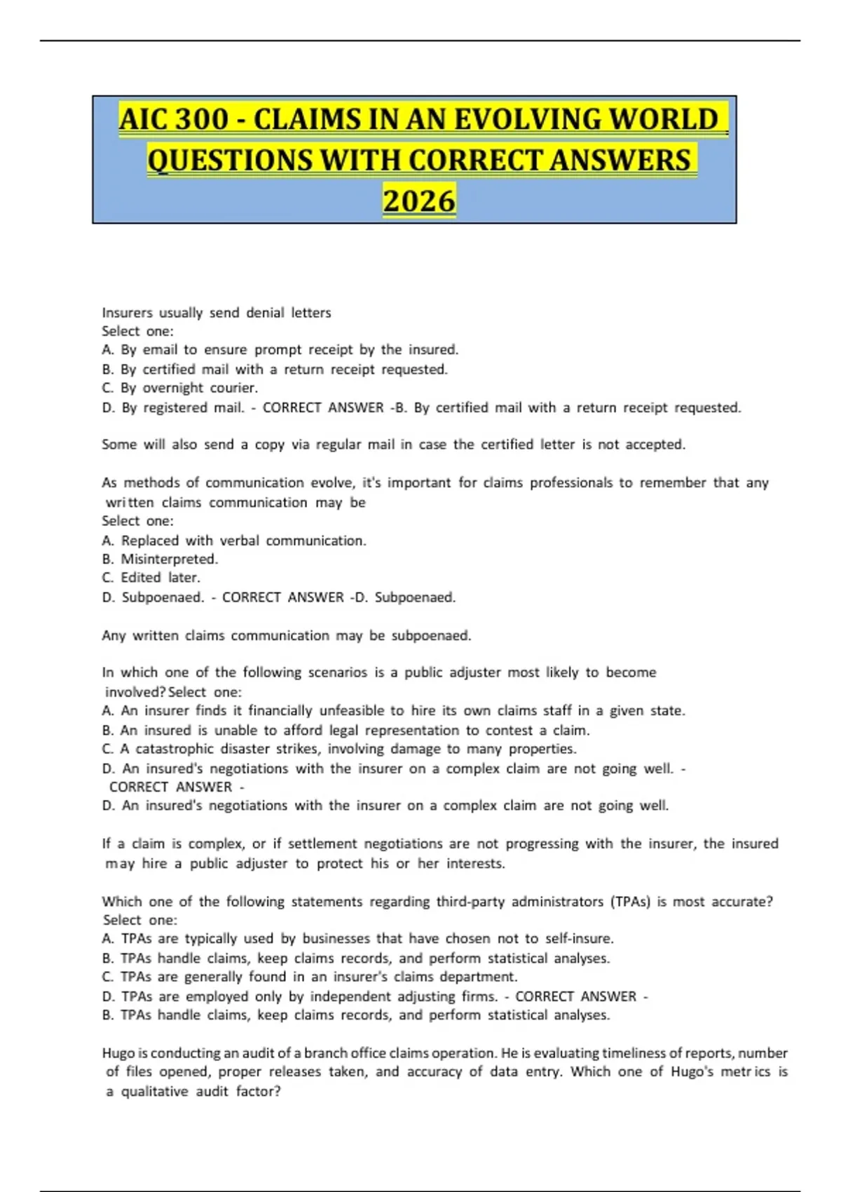D. Claim representative. - CORRECT ANSWER -D. Claim representative.