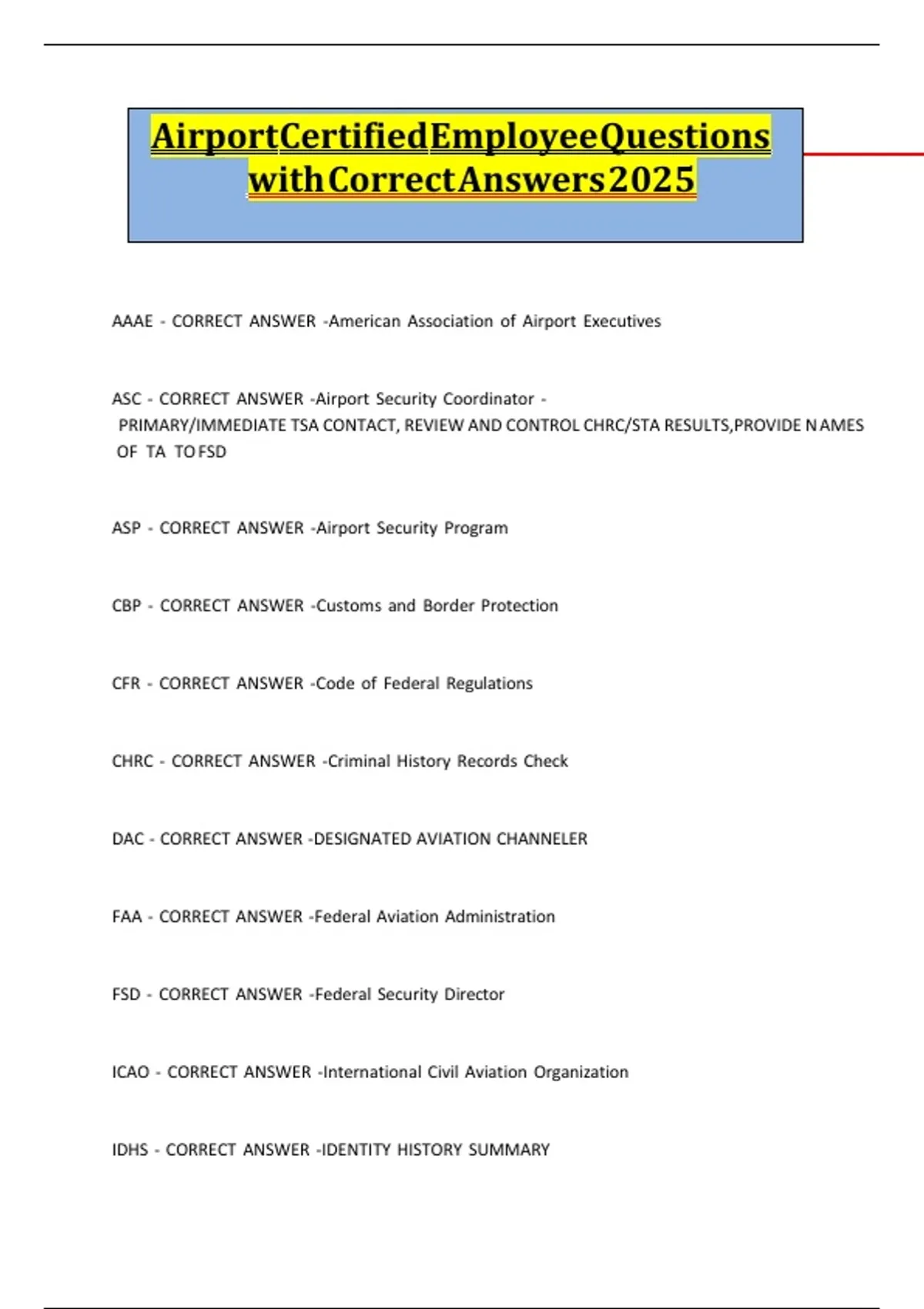 AAAE - CORRECT ANSWER -American Association of Airport Executives