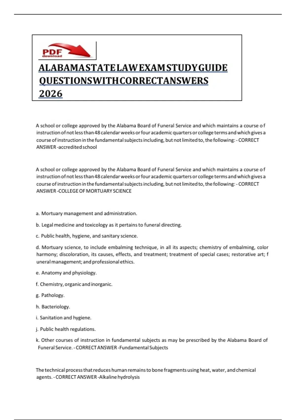 ANSWER -COLLEGE OF MORTUARY SCIENCE