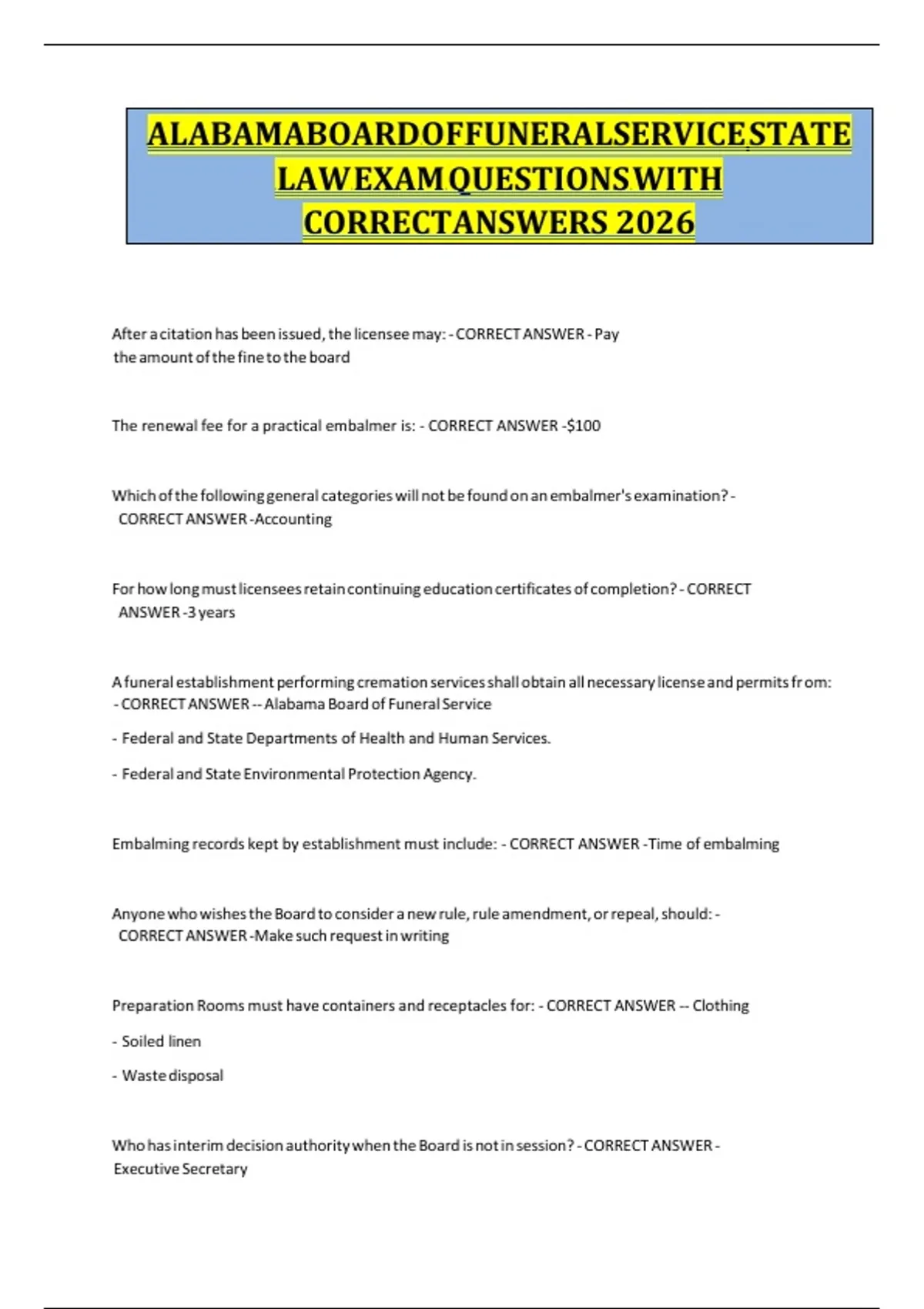 - CORRECT ANSWER -- Alabama Board of Funeral Service