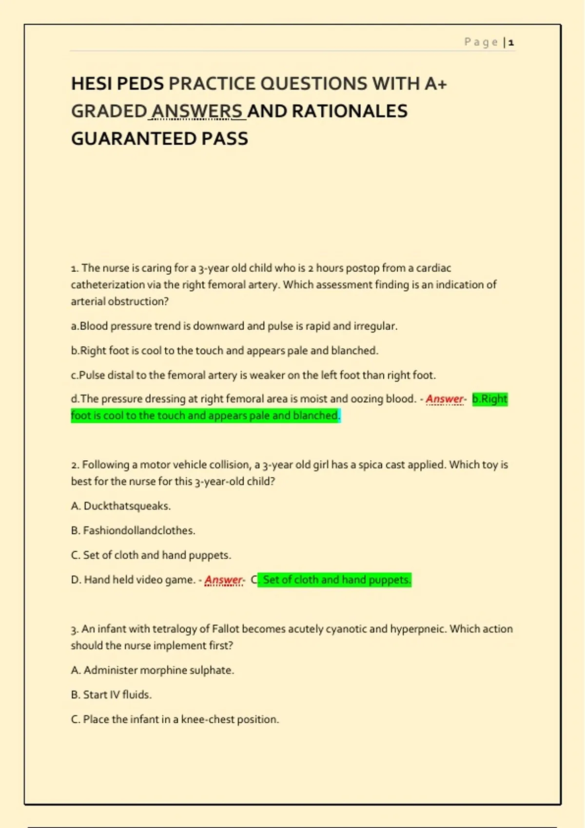 HESI PEDS PRACTICE QUESTIONS WITH A+