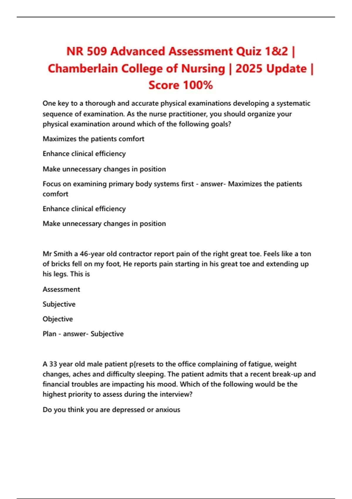 Focus on examining primary body systems first - answer- Maximizes the patients