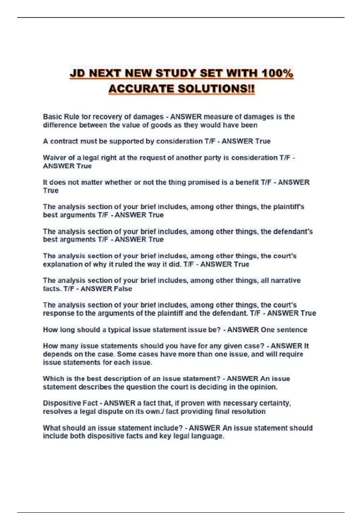JD NEXT NEW STUDY SET WITH 100% ACCURATE SOLUTIONS!!