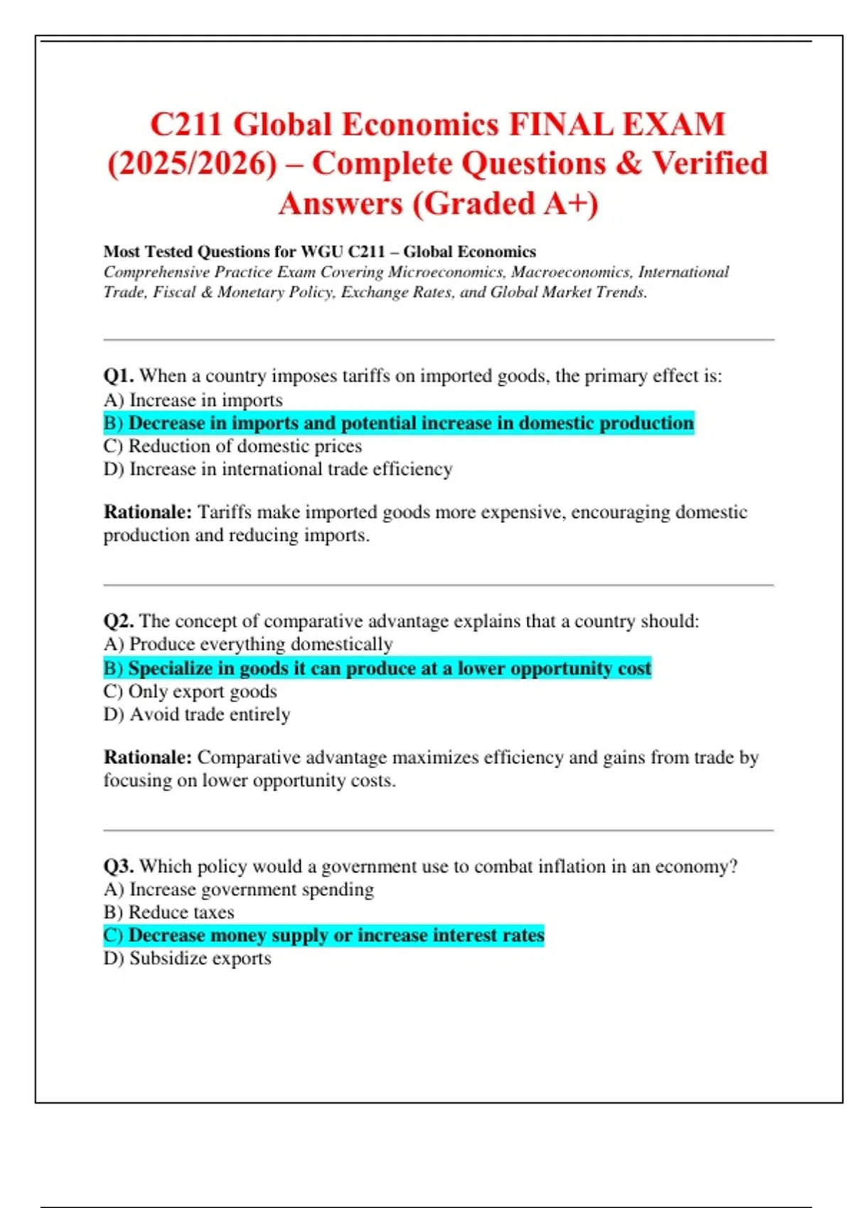 Comprehensive Practice Exam Covering Microeconomics, Macroeconomics, International