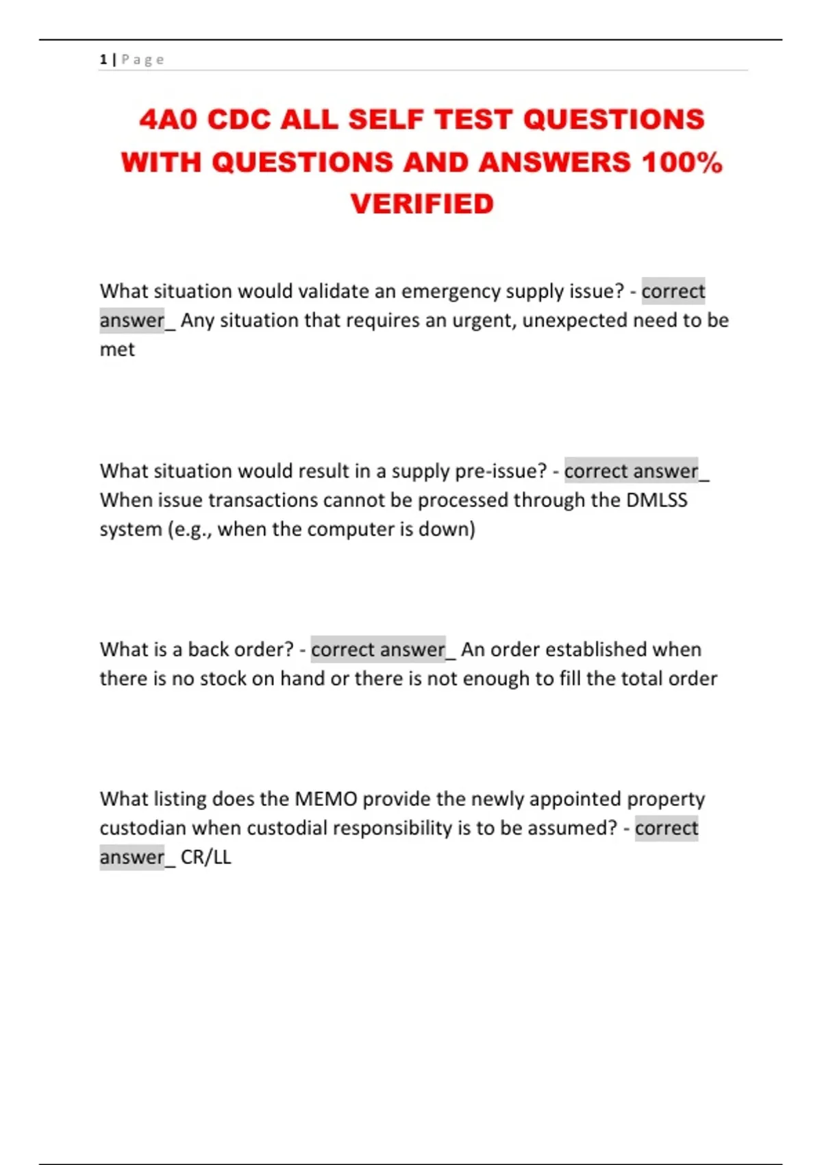4A0 CDC ALL SELF TEST QUESTIONS