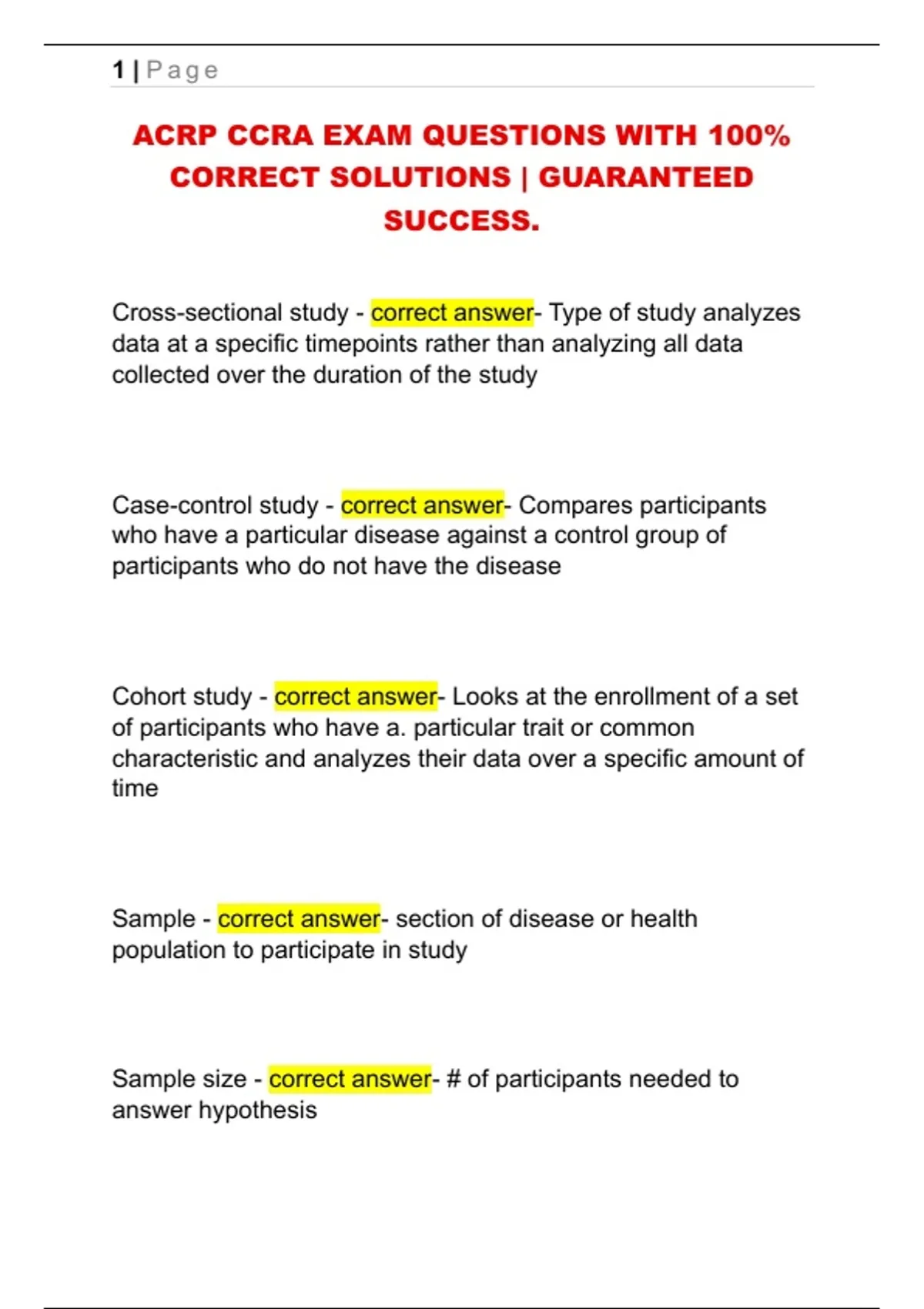 ACRP CCRA EXAM QUESTIONS WITH 100% CORRECT SOLUTIONS | GUARANTEED SUCCESS.
