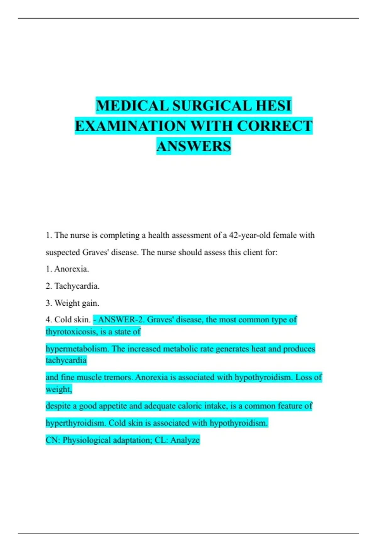 to therapy. Thyrotoxicosis does not cause confusion. The client may be worried