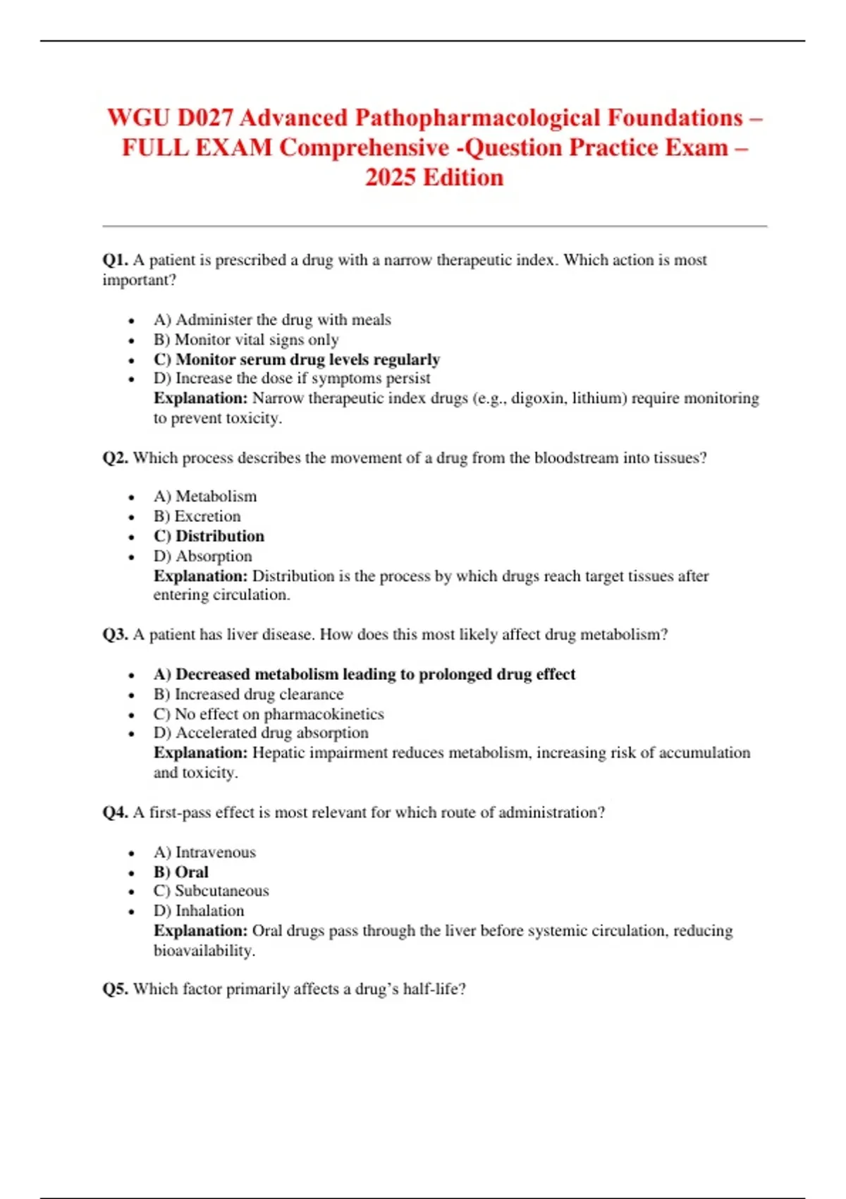 Explanation: Narrow therapeutic index drugs (e.g., digoxin, lithium) require monitoring