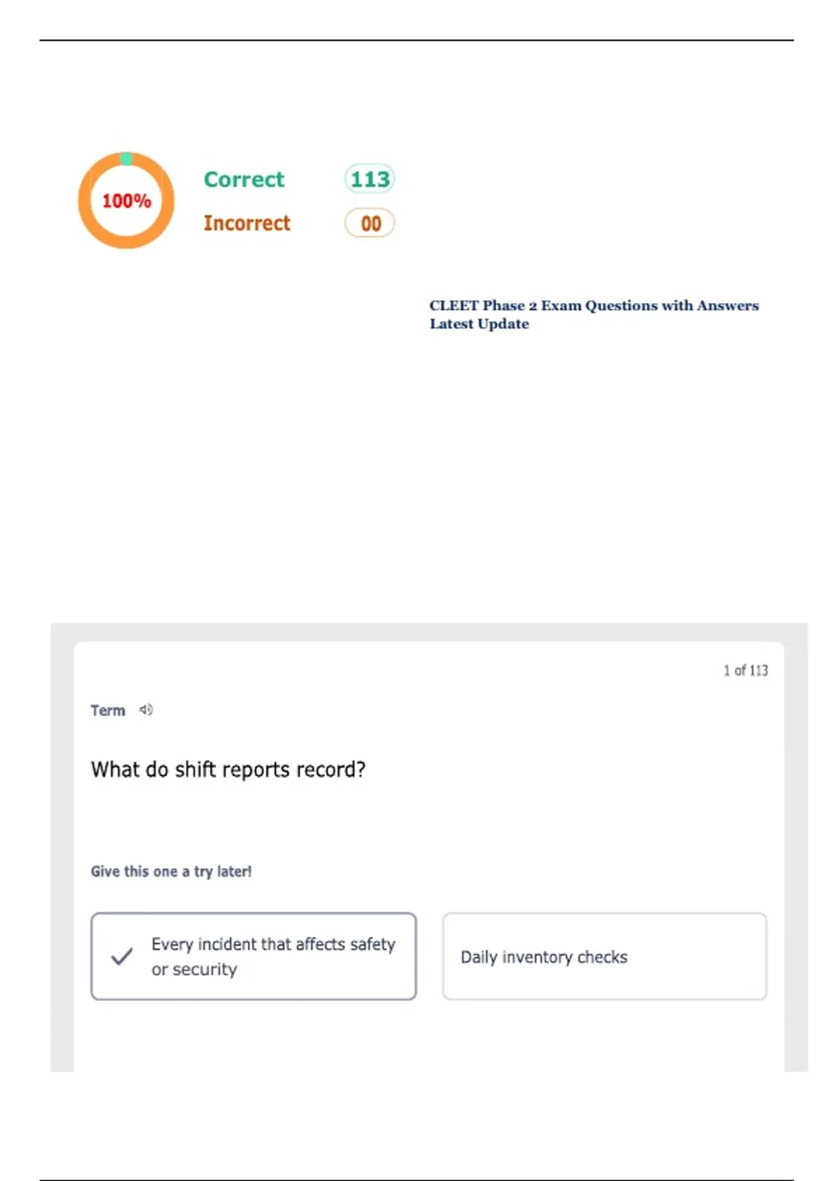 CLEET Phase 2 Exam Questions with Answers Latest Update