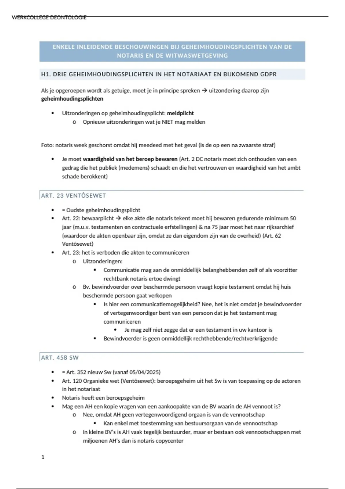 H1. DRIE GEHEIMHOUDINGSPLICHTEN IN HET NOTARIAAT EN BIJKOMEND GDPR