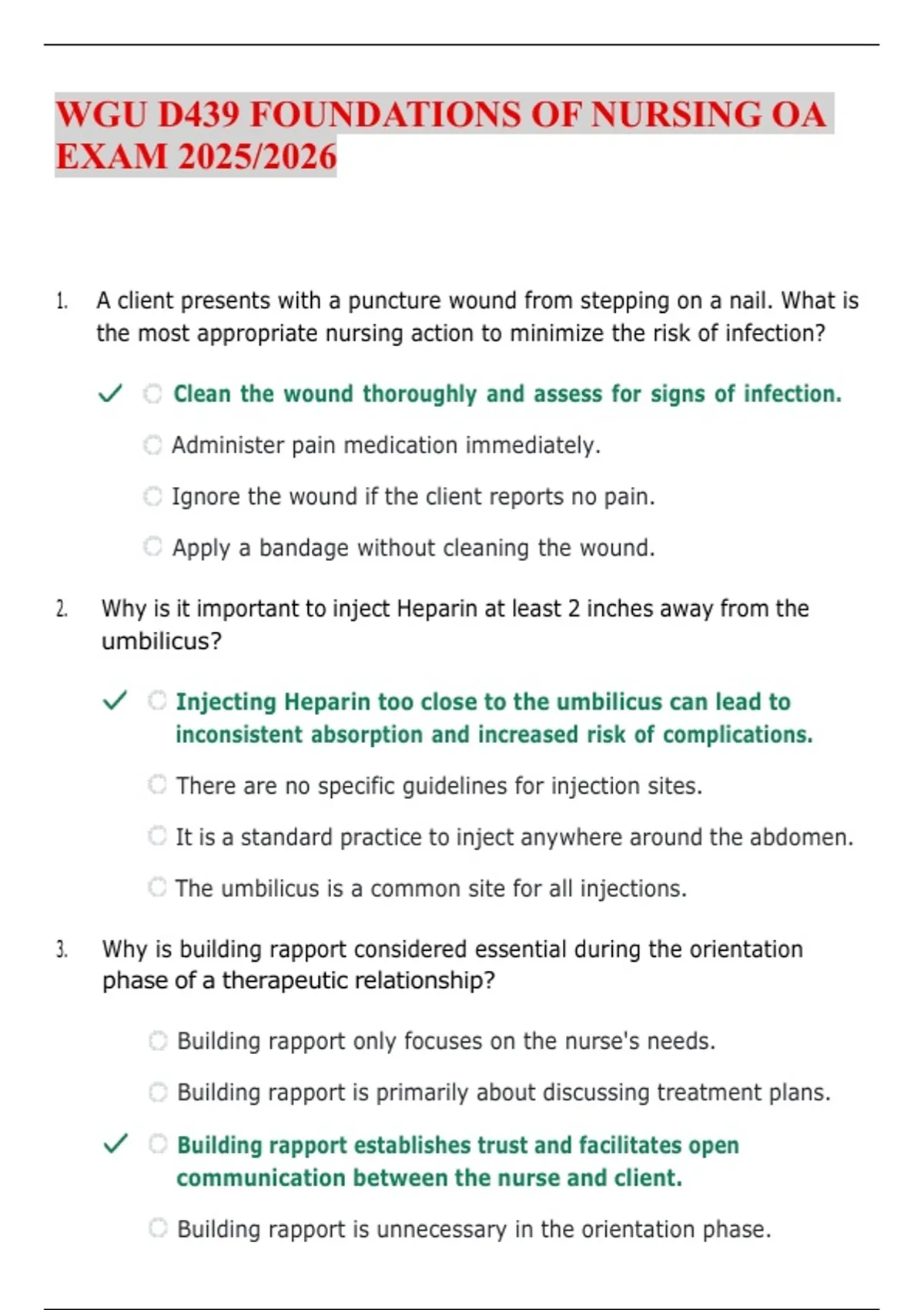 WGU D439 FOUNDATIONS OF NURSING OA