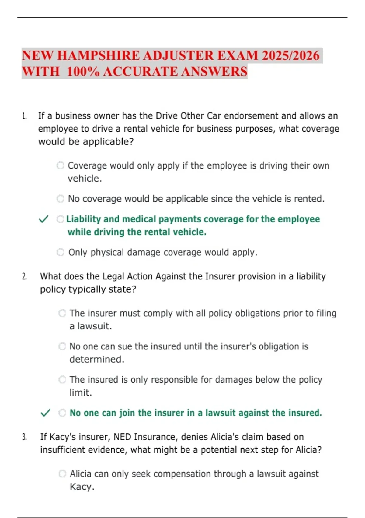 NEW HAMPSHIRE ADJUSTER EXAM 2025/2026