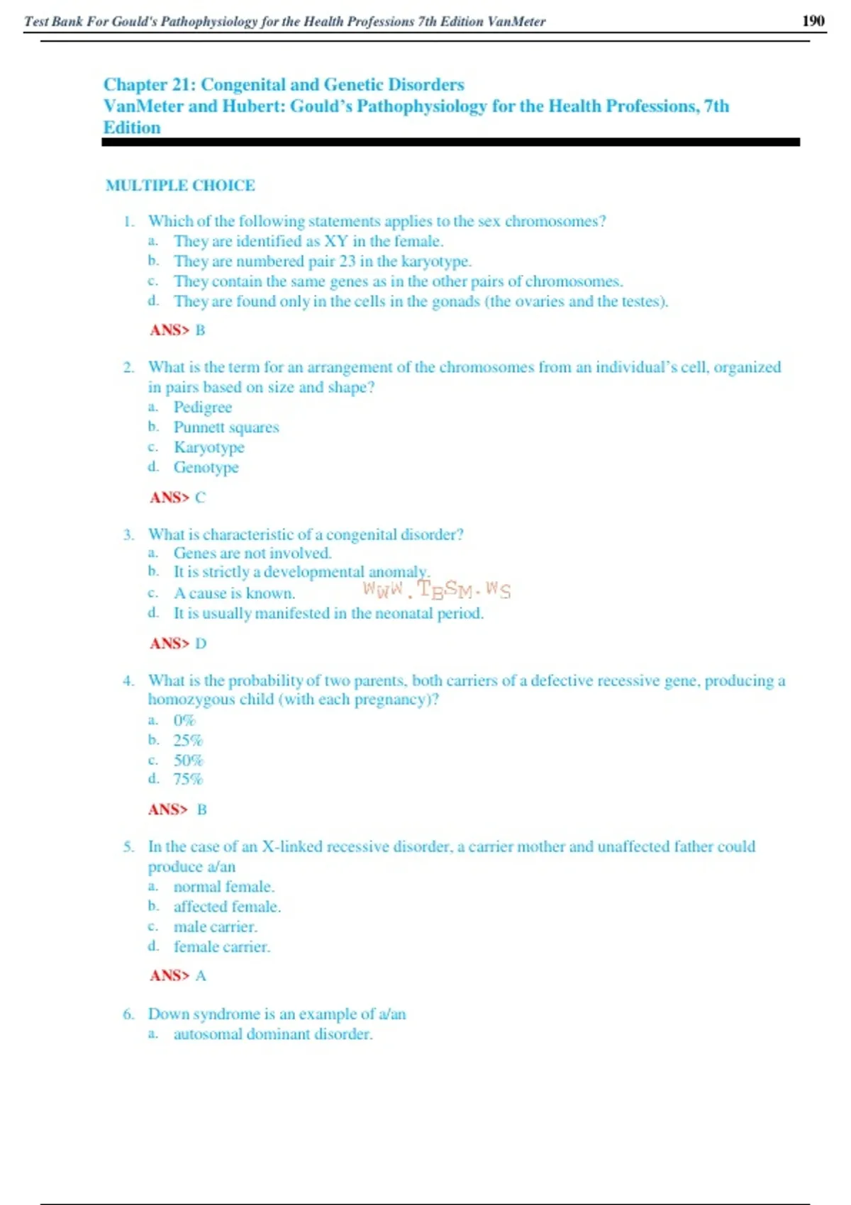 , Test Bank For Gould's Pathophysiology for the Health Professions 7th Edition VanMeter 192